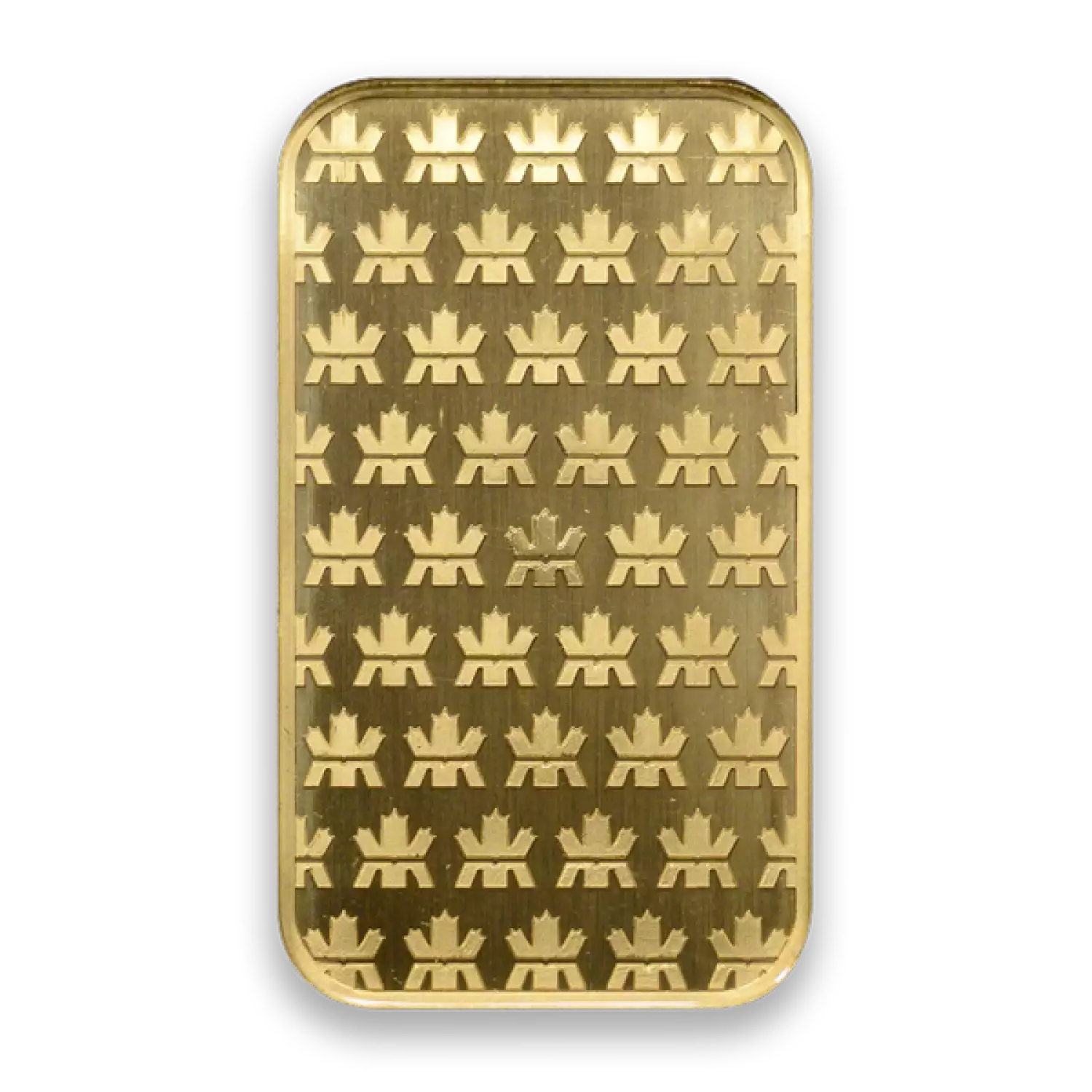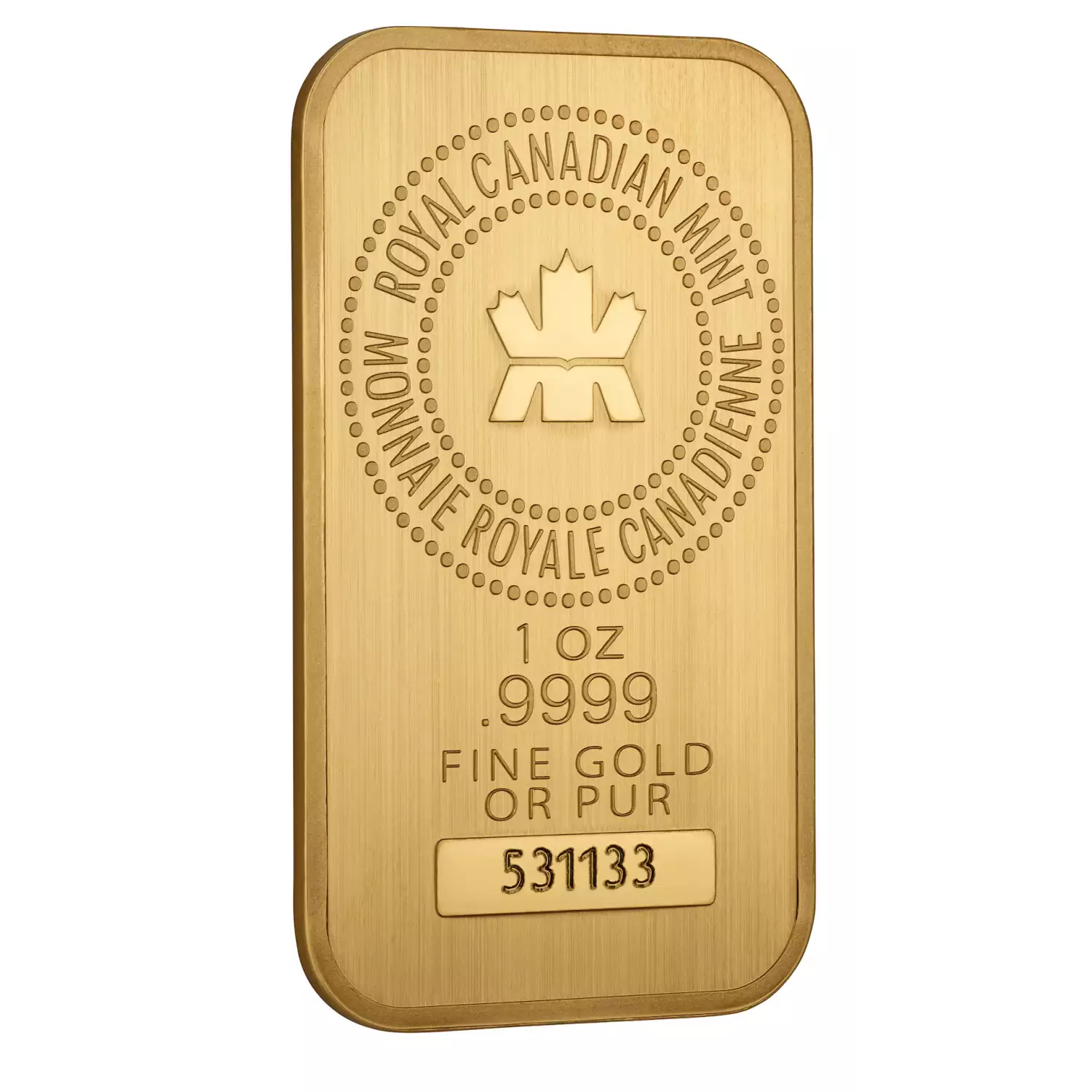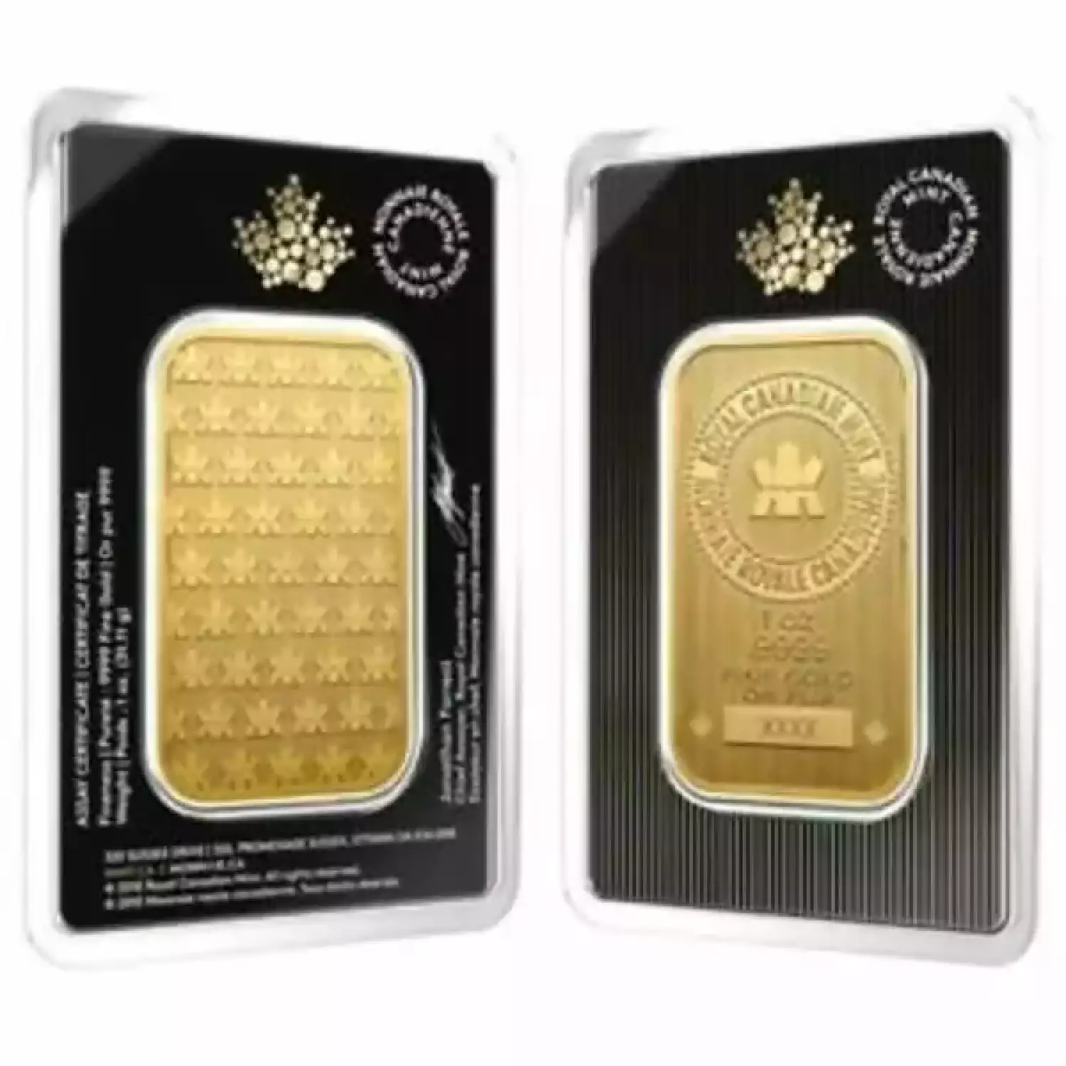 Minted by the Royal Canadian Mint, Royal Canadian Mint 1 oz Gold Bar highly respected and recognized gold bullion bar globally and contains 1 Troy Ounce of .9999 fine gold. This bar offers superior security features. 1 oz Royal Canadian Mint Gold Bars are known for their products’ quality feel and finish and their beautiful designs. Made with world-class minting technology, these bars offer excellent investment value and are a great addition to your portfolio.