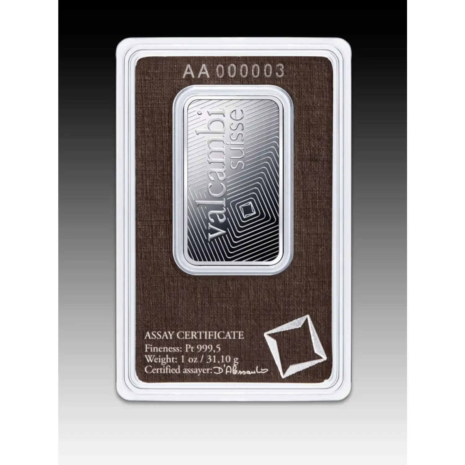 Want to buy a platinum bar from one of the genuine bullion dealers? Order the high-quality 1oz Valcambi Minted Platinum Bar online today from us! The platinum bar price is updated on our website every minute.