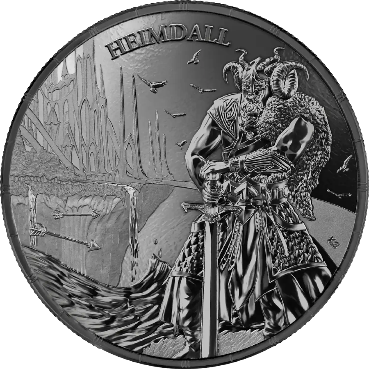 Discover an exceptional piece of artistry with the 2025 1 oz Ragnarök: Heimdall Black Silver Coin, a collectible that beautifully combines mythology with precious metals. This silver coin is a tribute to Heimdall, the vigilant guardian of the Bifrost Bridge in Norse mythology, known for his incredible hearing and foresight. The Ragnarök series celebrates the rich lore of Norse legends, making this coin a historic piece for collectors and investors alike.